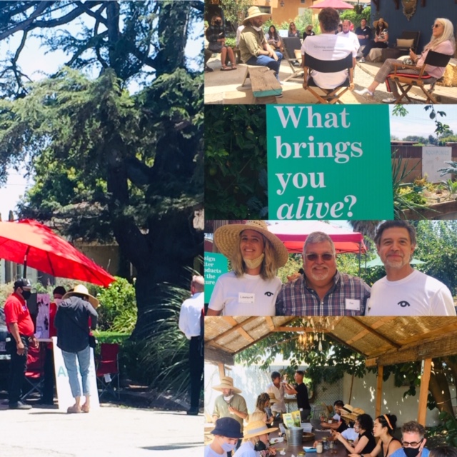 Then on Friday, August 6, I was fortunate to join a group of a group of thinkers, dreamers and entrepreneurs to participate in Alive Venture’s first “Alive Adventure” at Moonwater Farm in Compton, California. Art-oriented, urban farmer/co-host Kathleen Blackistone helped lead this half day workshop exploring new, smaller scale ways to improve one’s lifestyle at any age through organic farming, aquaphonics, livestock raising and healthier food preparation. It was amazing to also learn how Kathleen literally gambled her 401k savings into this model-type, micro farm-art sanctuary which many believed could never succeed and now hosts hands-on, educational visits for school children and families of nearby lower income communities